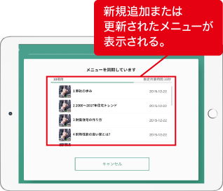 追加または更新されたメニューはiPad側で「同期」を行う事で最新情報になります。