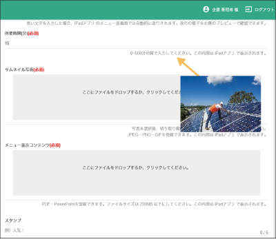 接客メニューcloudは、サムネイル画像やメニュー表コンテンツ(パワーポイントやPDFや動画ファイル)をドラッグ&ドロップで簡単に登録する事ができます。