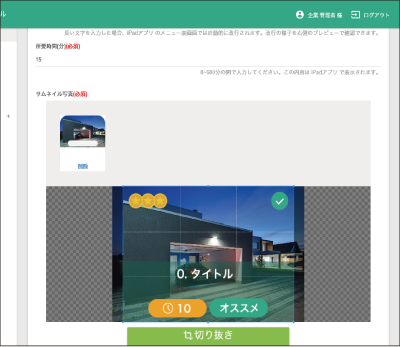 ドラッグ&ドロップまたは登録画面をクリックするだけで簡単にサムネイル写真を登録する事ができます。