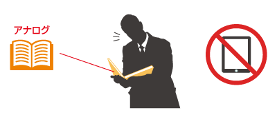 【原因】 紙の資料を出力してファイリングしているため定期的な更新がむずかしく、仕様が変更になったり新商品が出た場合でも古い情報が記載されたままになっている。
